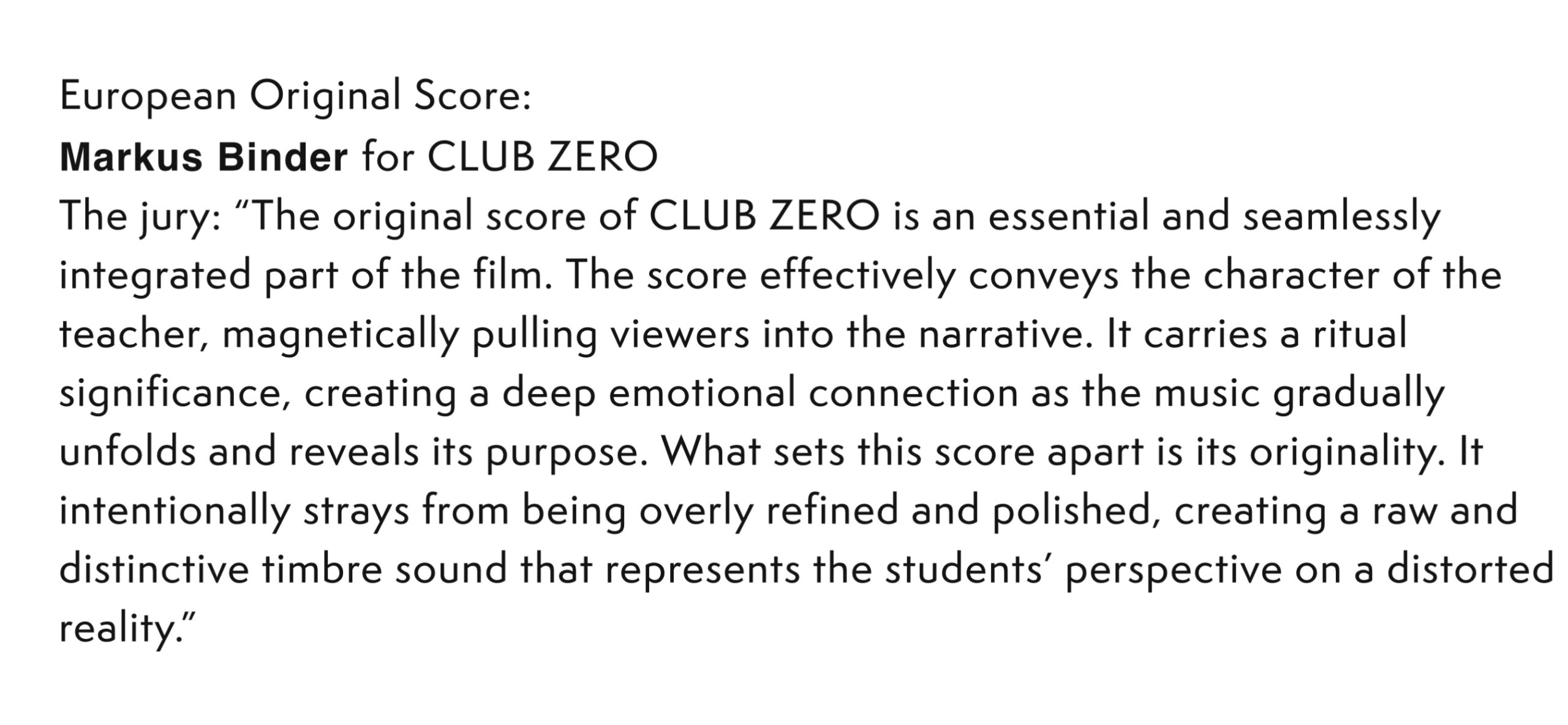 A conversation with Markus Binder, winner of the 2023 European Excellency Award in the European Original Score category for the film music for CLUB ZERO.